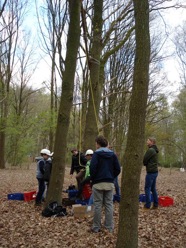 Alles wordt in gereedheid gebracht om zo een hoog mogelijke toren van kratten te stapelen