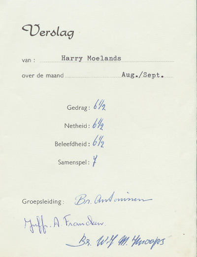 Verslag Gedrag 6 1/2 Netheid 6 1/2 Beleefdheid 6 1/2 Samenspel 7 Groepsleiding broeder Anthonissen juffrouw Anne Franken roeder Johan Knoops