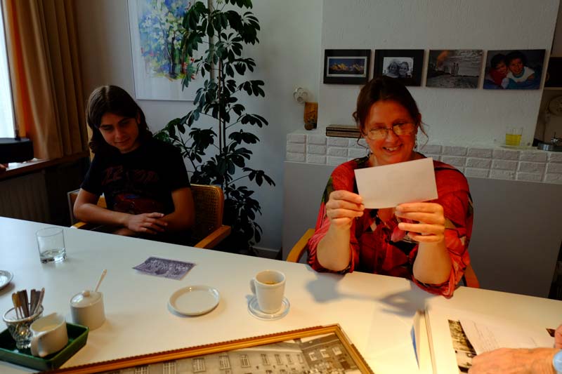 John vertelt enthousiast over de groepsfoto die ik heb mee gebracht.