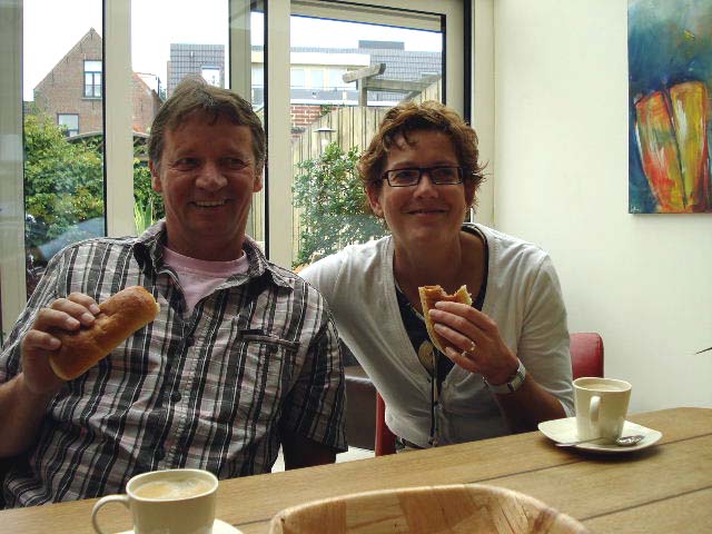 Eerst langs Nico en Jeanine voor een bakske koffie met een