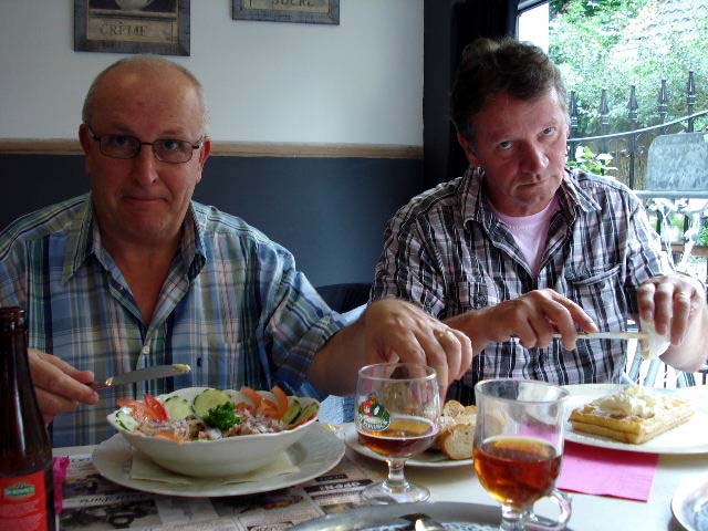 Na een lange fietstocht een lekkere Belgische lunch