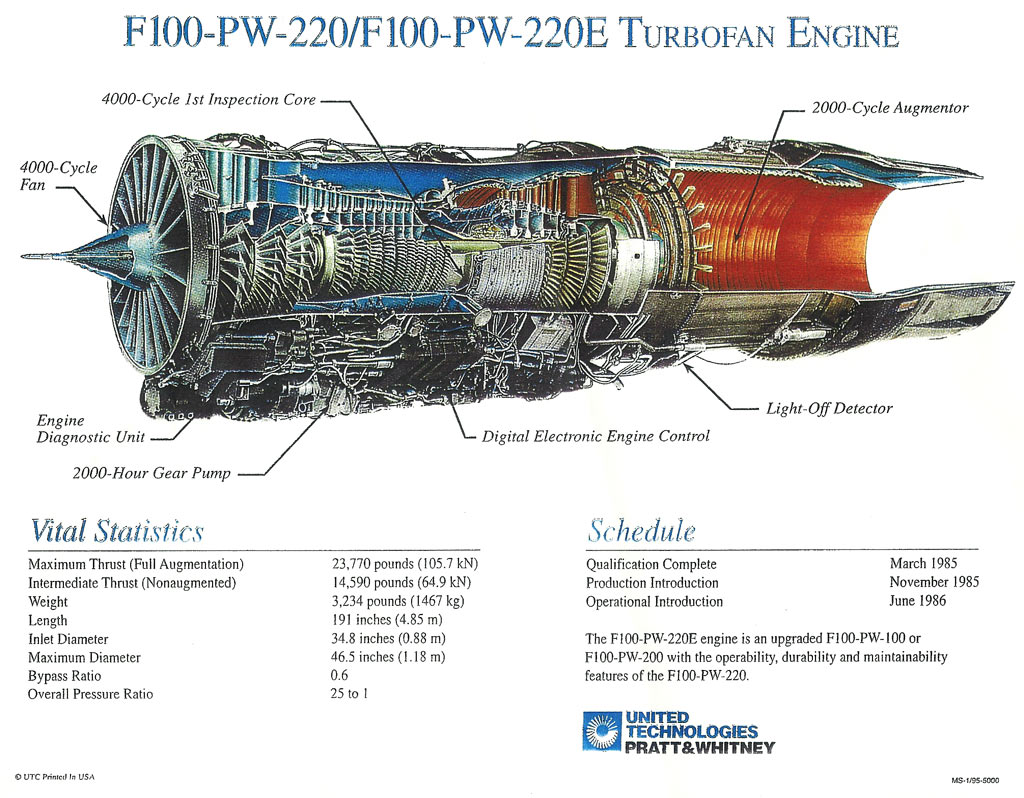 Straalmotor Pratt & Whitney F100-PW-220E Turbofan Engine van de F-16