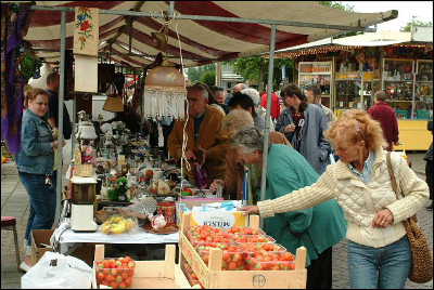 grote braderieën waar ze drie kramen hebben met kleding en vier