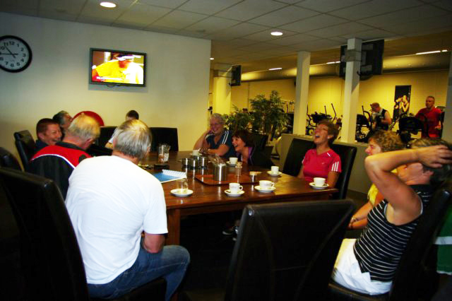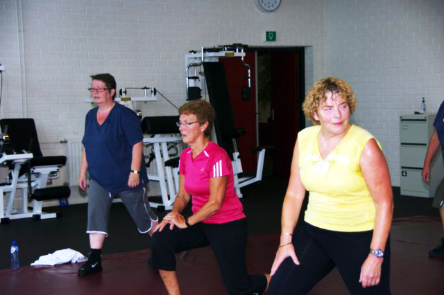 Alle oefeningen passeren de revue, na de warmingup gaan we spinnen fietsen