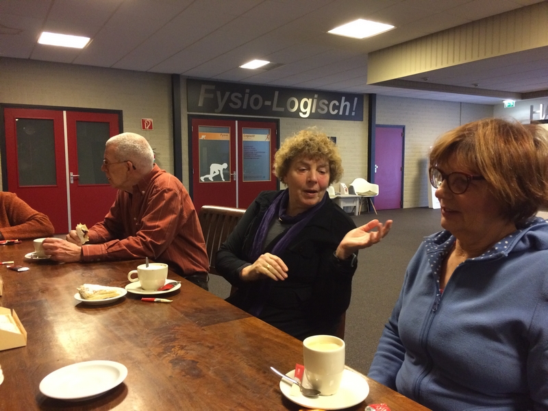 Anke en Joke verjaardag vieren koffie drinken na het sporten