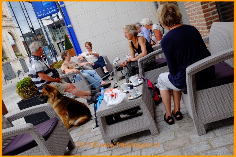 Hotel du Beffroi Gravelines. Gezellig nog even aan de koffie voordat we vertrekken voor een strandwandeling. Freyja heeft er al zin in ;-)