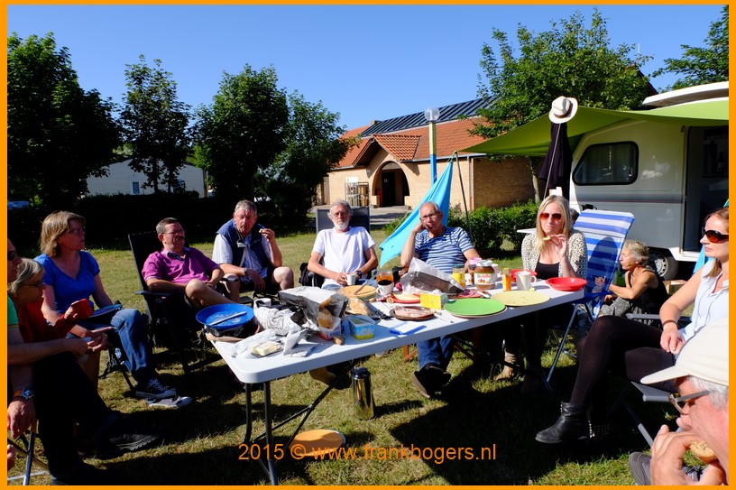 's Morgens bij Jaques en Marie-José Bakker ontbijten op de camping en boterhammen smeren voor de middag.