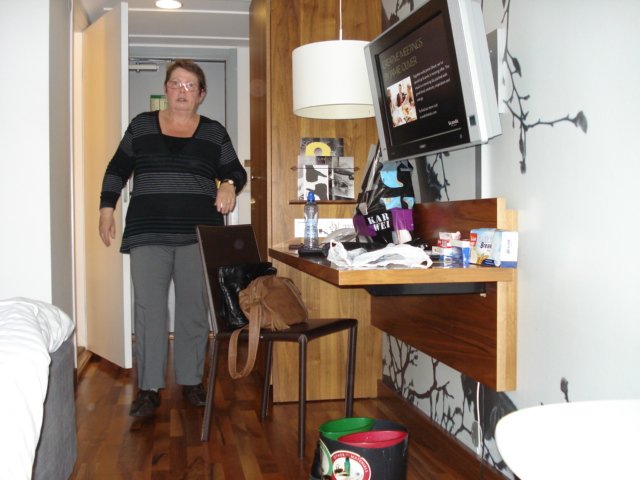 Onder weg zien we ons hotel al Scandic Crown