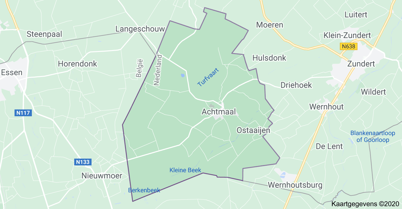 De onmiddellijke omgeving van Achtmaal bestaat uit landbouwgebied. Enkele waterlopen in de omgeving zijn de Turfvaart, de Helloop, de Kraaiheuvelloop, de Ellevaartse Loop, de Roosendaalse Vaart en de Kleine Beek. Deze dienden oorspronkelijk om de aldaar gewonnen turf af te voeren en zijn door de mens gegraven. Ongeveer 6 km ten zuidwesten van Achtmaal ligt het natuurgebied Matjens, waar nog een restant van het veen te vinden is. (bron Wikipedia)