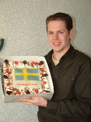 Hier nog met oom Peter op de foto en de mooie Zweden taart