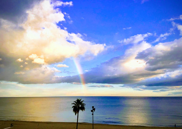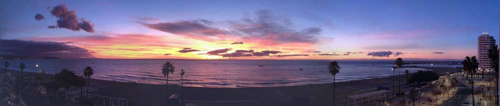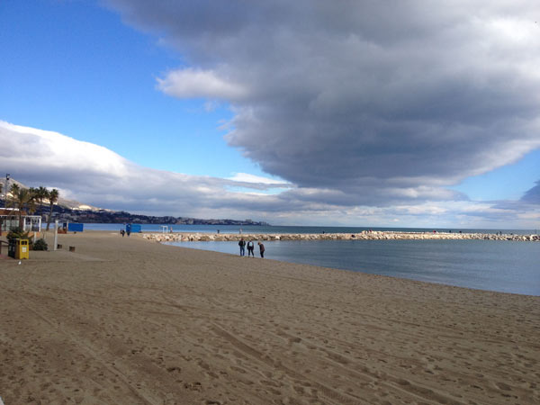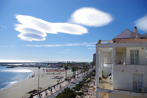 De lens wolken bleven mooi hangen boven zee en het strand. We konden er geen genoeg van krijgen. Wat is het hier toch mooi aan het strand van Fuengirola.