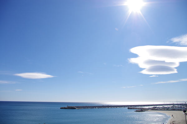 zuidkust Fuengirola. Mooie zonnestralen, prachtige ufo wolkenfoto's,
